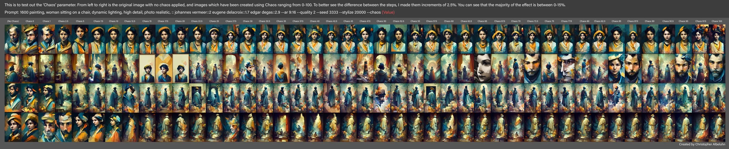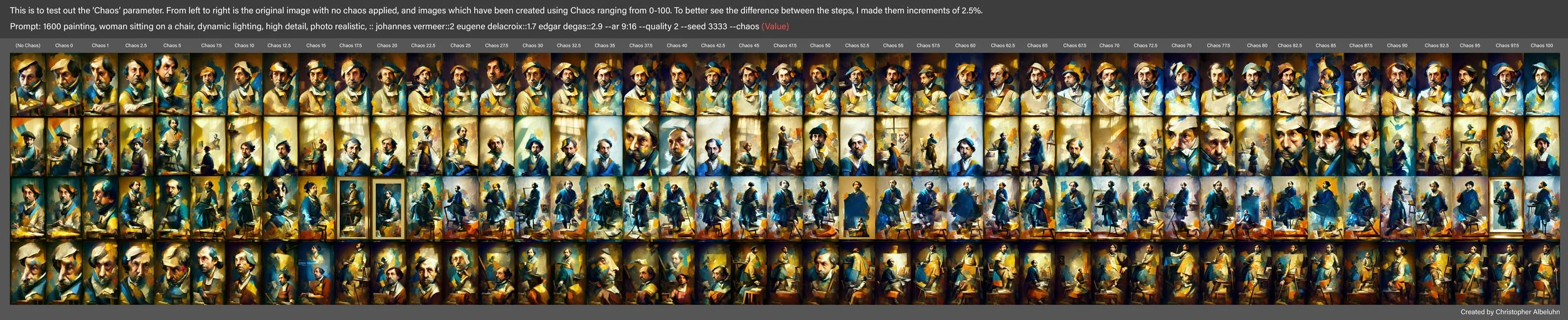 There is a “chaos” parameter you can use to add variation to your images. Below are some renders comparing the different values of chaos ranging from 0-100. I do some tests with larger increments of 10, and some with finer increments of 2.5 so you can better see the differences.