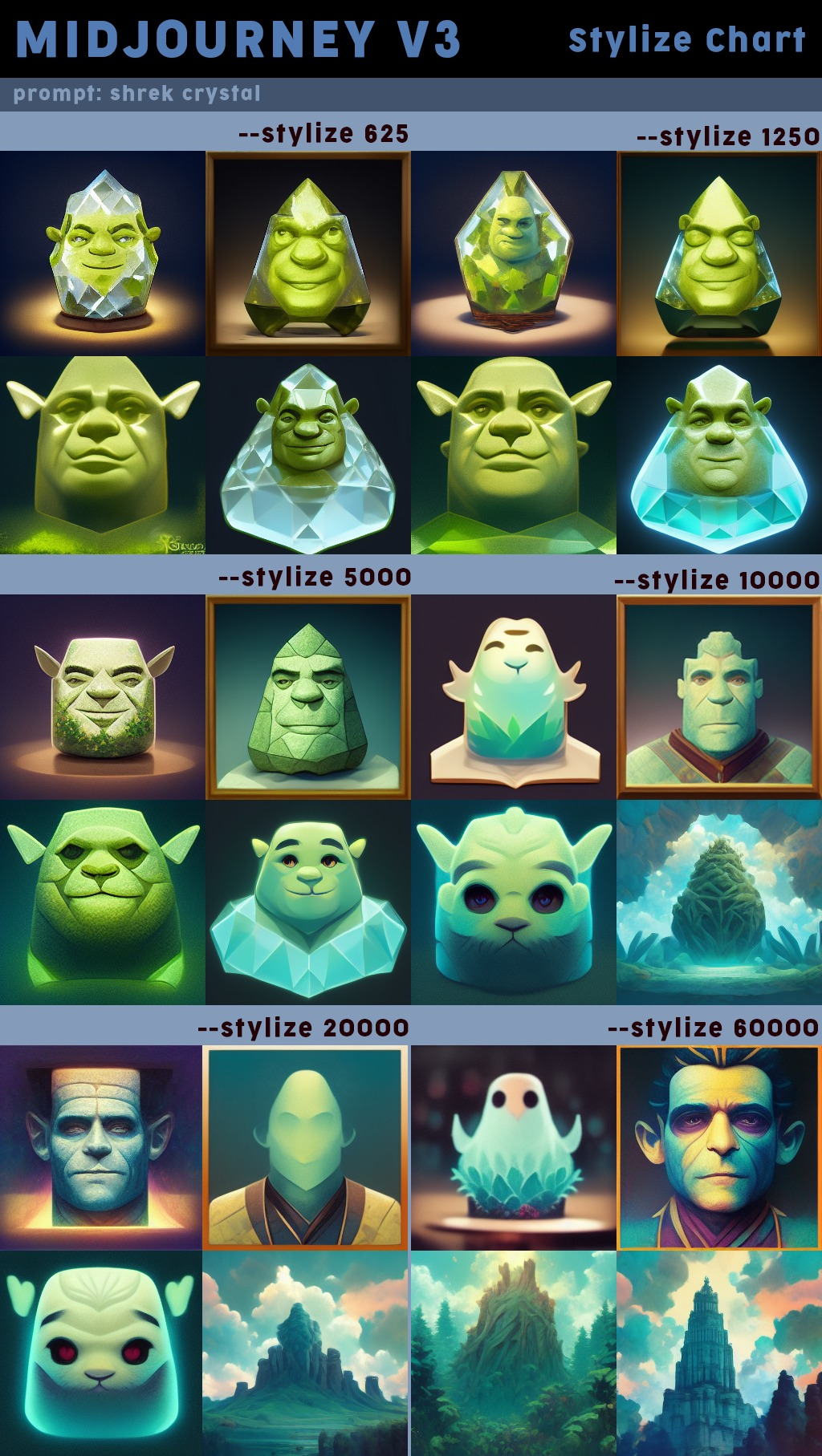 This shows the effect of the “—Stylize” command. This image is from the MidJourney Discord.