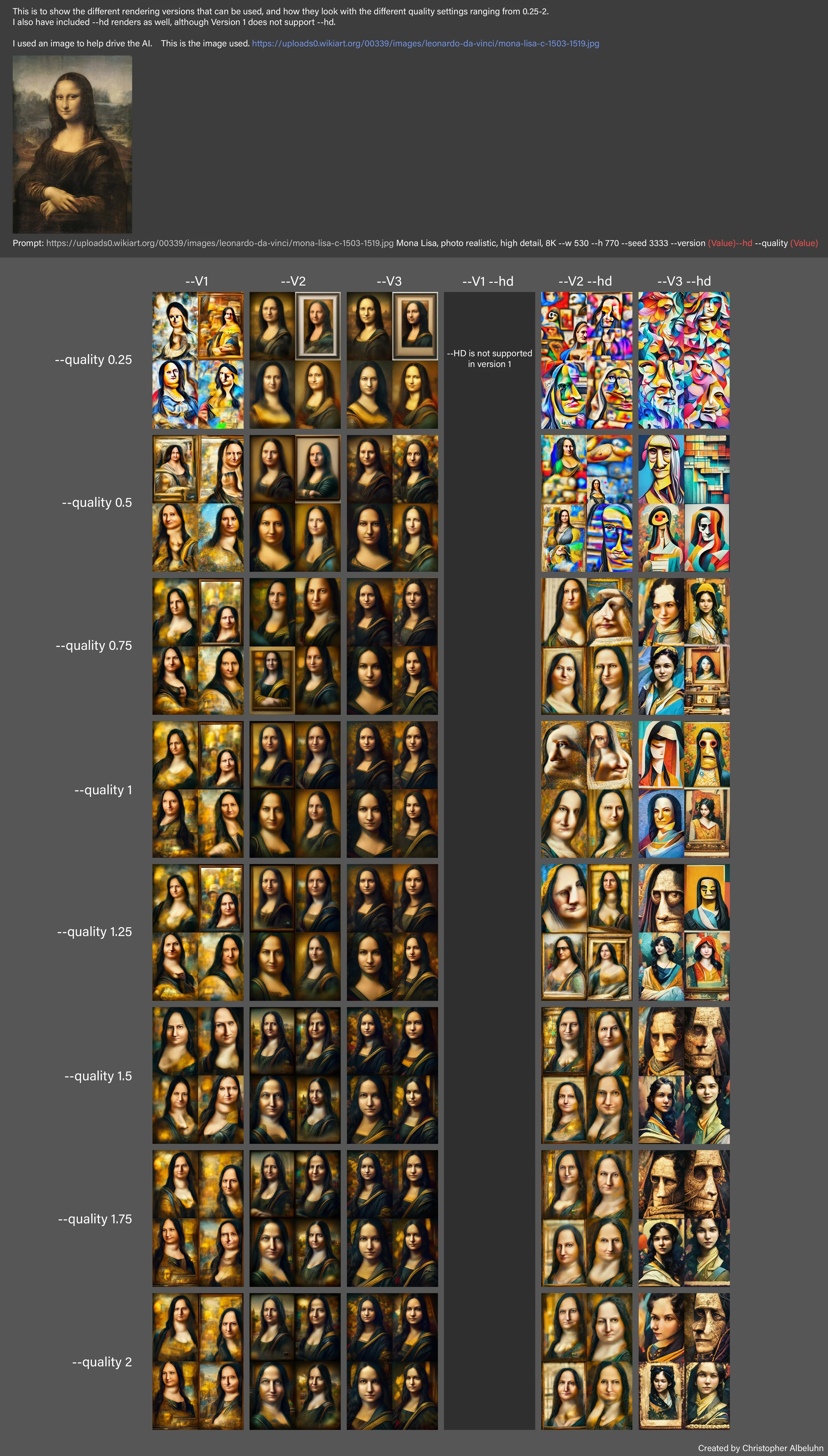 You can choose from 1 of 3 versions for the rendering, but also there’s a “hd” option available. Below are images showing the comparison of the different version with, and without the HD enabled, but also at different quality values ranging from 0.25-2. (Version 1 doesn’t support HD)
