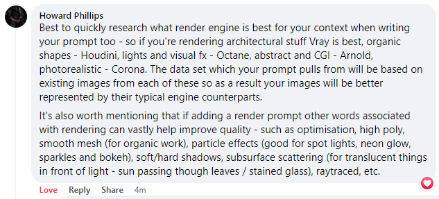 This was a comment on facebook regarding what rendering engines are best for what situations.
