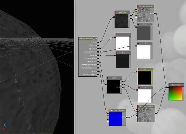 For this example, I used only two textures; a black and white spec map to add color variation and to drive the distortion, and a normal map to push the surface of the geometry so the spec has something to work with when the light shines on the surface.