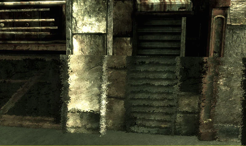 This image has the constant values of the distortion set to 0 and 5. As you can see, the angle at which it distorts changes as well as a solid black strip along the right side of the screen appears. Because of this, the constant value should not go too high, or screen bleeding will occur. Lower is better.