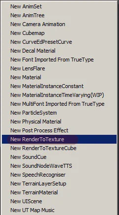 In the 'General' browser, right click and select 'New RenderToTexture'. The image to the left is where it's located, and below is the window that should pop up.
