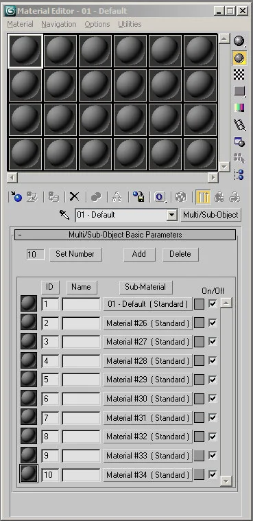 When you press the 'Add' or 'Delete' options, it will add or subtract a material at the end. So if you hit 'Delete', it will remove the 10th material if you only have 10 in the multi sub.